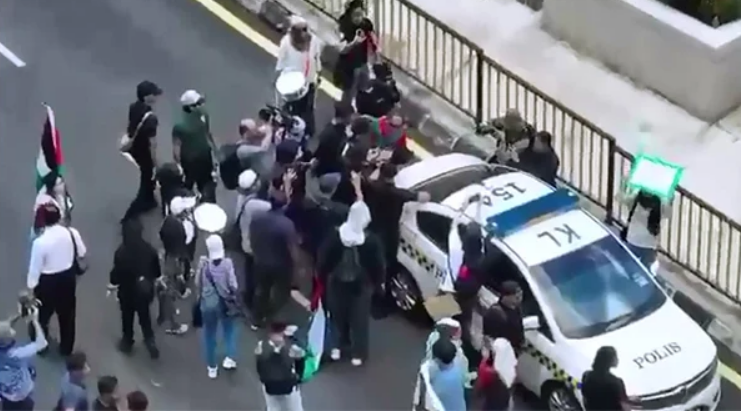 吉隆坡街头10月2日火药味十足!因以色列军方在国际水域拦截全球坚韧船队(GSF),疑扣留12名大马公民,大批民众中午12点冲到美国驻马大使馆前抗议,声援加萨人道任务。结果,集会中部分人堵路引发冲突,一名警员受伤流血,2名23岁和32岁的男子因“阻差办公”被捕!10月3日,旺沙玛朱警区主任莫哈末拉津助理总监宣布,两人已录口供并获保释,但这事还没完!