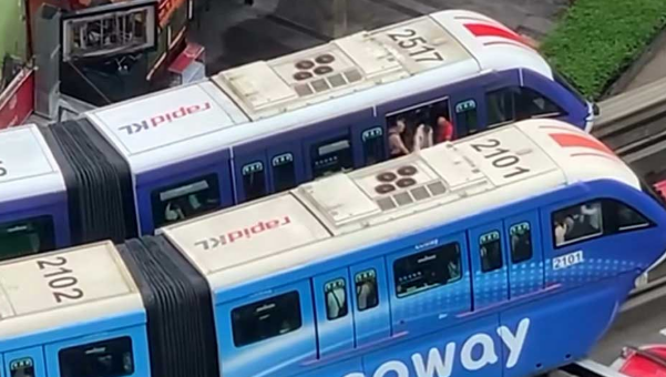 吉隆坡单轨火车今早突发“高空惊魂”!一列列车因电力故障卡死在美丹端姑站与帝帝旺沙站之间,乘客被困车厢近2小时,闷热到有人晕倒,更被迫在30米高空“走钢丝”换车,吓到腿软,网民直呼“太可怕了!”