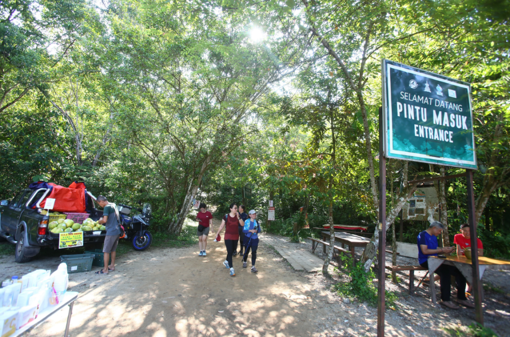 行动那天早上11点,警方联手JPNS执法组、生态公园队和博特拉大学(UPM)团队,突袭森林保留区,逮了75人全因没入林准证(Borang 6),违反1985年森林法令第47条!这些人被押到沙登警区总部,当天获保释,但禁区围栏和告示牌似乎没用。记者采访入口处小贩黄益生,他切着水果摊位前叹气:“我天天劝那些年轻人别闯,告示牌清清楚楚写着禁止进入,可他们当耳边风!进去后野餐、煮面,面包屑乱扔,山林成垃圾场!”黄益生说,这些闯入者多是友族年轻人,好言相劝也没用。
